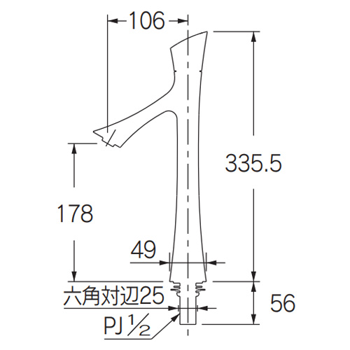 洗面用蛇口 ゾウシリーズ[台][単水栓][スパウト106mm][吐水口高さ178mm][トール][ウシ][一般地]
