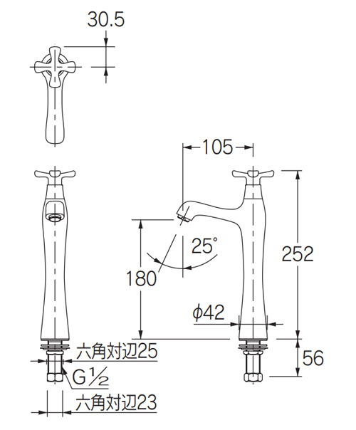 洗面用蛇口 hana[台][単水栓][立水栓][スパウト105mm][吐水口高さ180mm][トール][一般地]