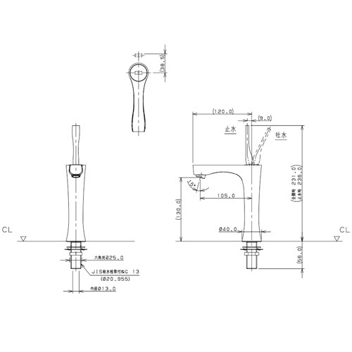 洗面用蛇口 神楽[台][立水栓][スパウト105mm][吐水口高さ130mm][ミドル][一般地]
