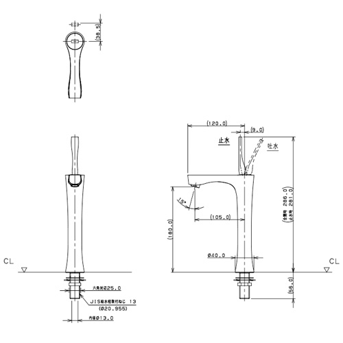洗面用蛇口 神楽[台][立水栓][スパウト105mm][吐水口高さ180mm][トール][一般地][アンティークゴールド]