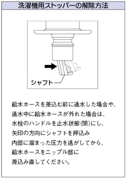 ※洗濯機を使用しない時は、万一の水漏れを防ぐため水栓を閉めてください。