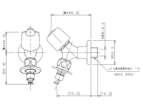 洗濯機用蛇口[壁][単水栓][洗濯機用水栓][ストッパー、送り座付][一般地]