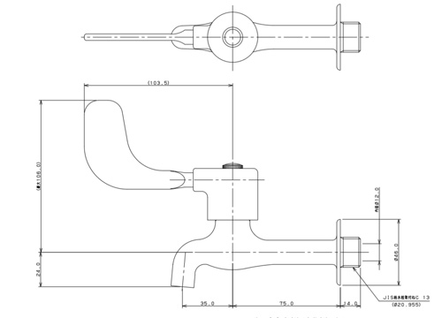 洗面用蛇口[壁][単水栓][レバー式胴長横水栓][スパウト110mm][介護施設向き][一般地寒冷地共用]