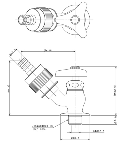 一般用蛇口[壁][単水栓][自動接手散水栓][呼13][一般地寒冷地共用]