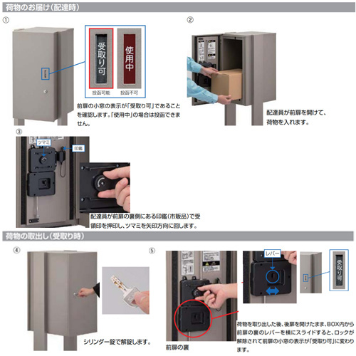 ・宅配物の受取りできる最大サイズ(mm):幅:220以下 奥行330以下 高さ480以下