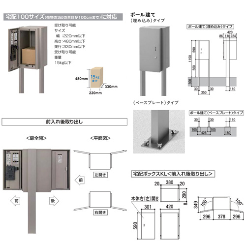 ●宅配ボックス KLシリーズ[ポール仕様][前入れ後取出し][シリンダー錠][ベースプレート仕様]
