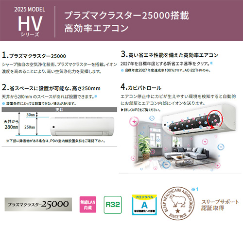ルームエアコン[HVシリーズ][200V][20畳][6.3kW][ホワイト][2025年モデル]