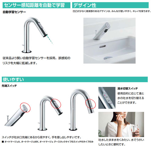 洗面用蛇口 オートマージュA[台][自動水栓][混合水栓][手動・湯水切替スイッチ付][泡沫][AC100V][ポップアップ式][一般地]