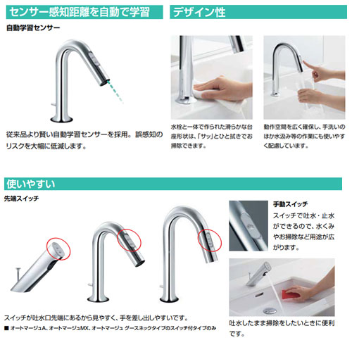洗面用蛇口 オートマージュ[台][自動水栓][単水栓][グースネックタイプ][手動スイッチ付][泡沫][AC100V][ポップアップ式][一般地]