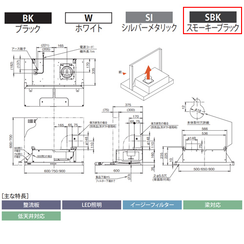 ●【SALE】♭レンジフード スタンダードシリーズ[シロッコファン][幅90cm][スリム型][スモーキーブラック][右排気]