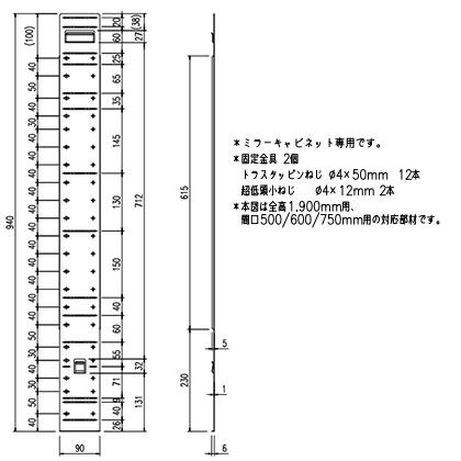 > > > > ミラーキャビネット用壁補強リフォームキット[全高1900mm用][間口500/600/750mm用][ピアラ専用][オプション][洗面部材]