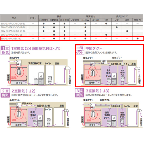 浴室暖房乾燥機[温水式][天井埋込型][中間ダクト接続][開口コンパクトタイプ][自動乾燥機能付][衣類乾燥][1坪以下]