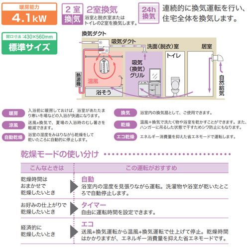 浴室暖房乾燥機[温水式][天井埋込型][2室換気対応][開口標準タイプ][2室自動乾燥機能付][衣類乾燥][1.5坪以下]