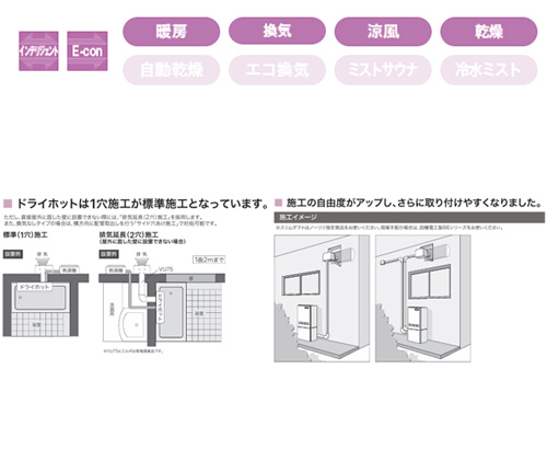 ・適応サイズ:ユニットバス 1.25坪まで/在来工法バス 1坪まで