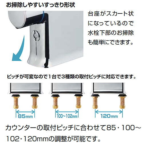 ※カウンターの取付ピッチに合わせて85・100〜102・120mm7の調整が可能です。