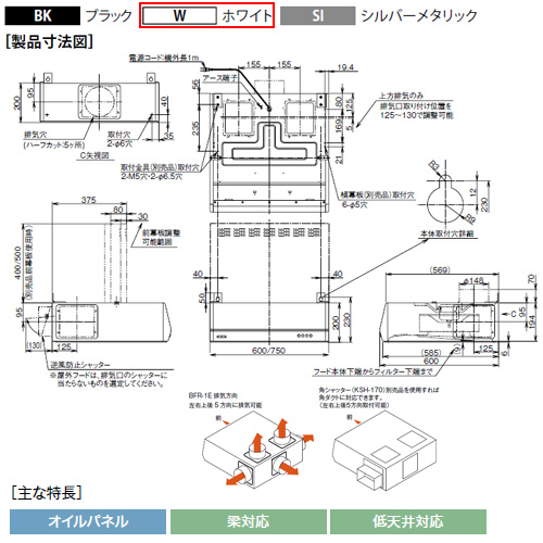 ●レンジフード スタンダードシリーズ[ターボファン][幅60cm][平型][ホワイト]