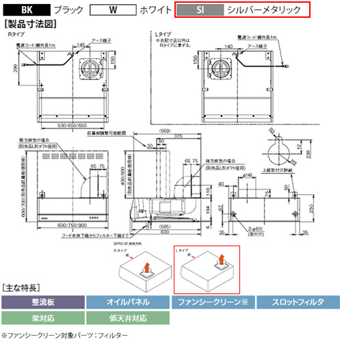 ●レンジフード スタンダードシリーズ[シロッコファン][幅90cm][平型][シルバーメタリック][左排気]
