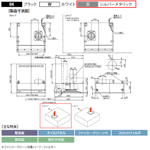 ●レンジフード スタンダードシリーズ[シロッコファン][幅60cm][平型][シルバーメタリック][右排気]