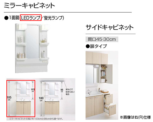 洗面化粧台(開きタイプ) シャワー付シングルレバー水栓 一般地仕様