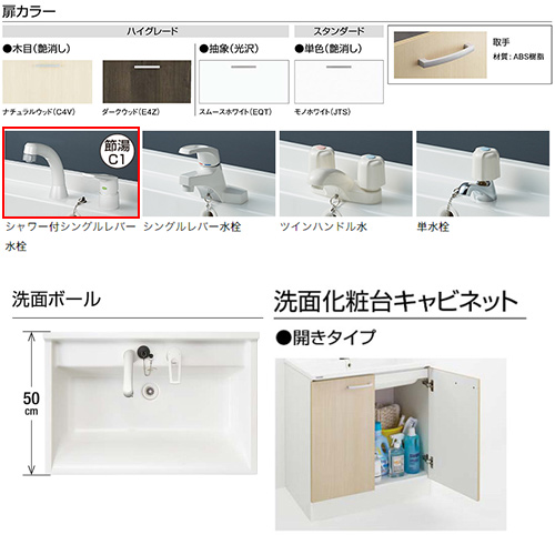 洗面化粧台(開きタイプ) シャワー付シングルレバー水栓 一般地仕様