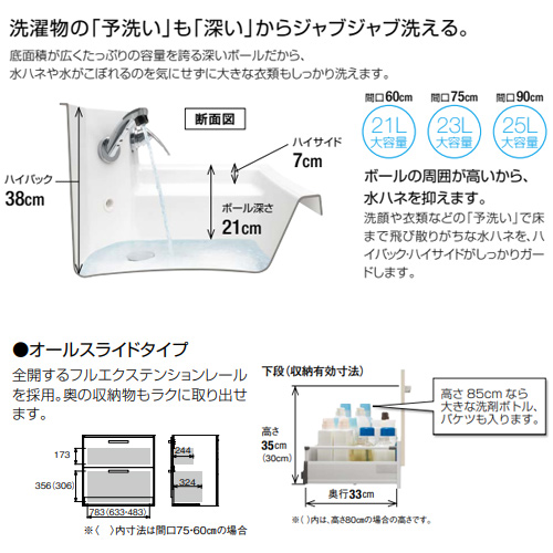 ・洗面化粧台/オールスライドタイプ・壁だし水栓