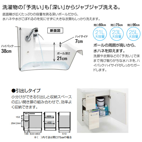 ・洗面化粧台/引出しタイプ・壁だし水栓