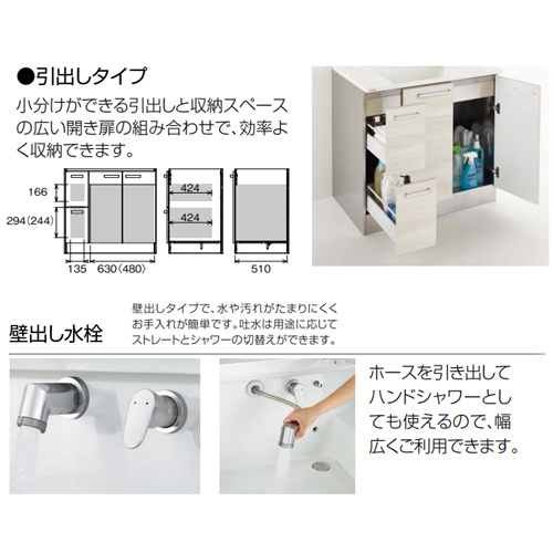 ・洗面化粧台/引出しタイプ・壁だし水栓
