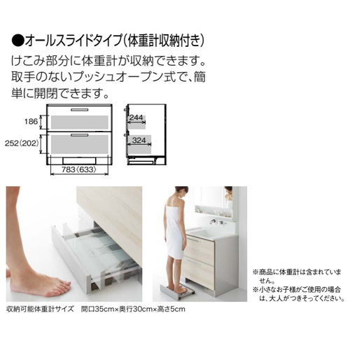 ・洗面化粧台/オールスライドタイプ・体重計収納付き・壁だし水栓