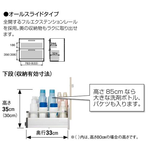 ・洗面化粧台/オールスライドタイプ・壁だし水栓