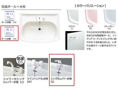 ※こちらの商品は、水栓がシングルレバー水栓となります。その他水栓をご希望の場合は、お問い合わせください。