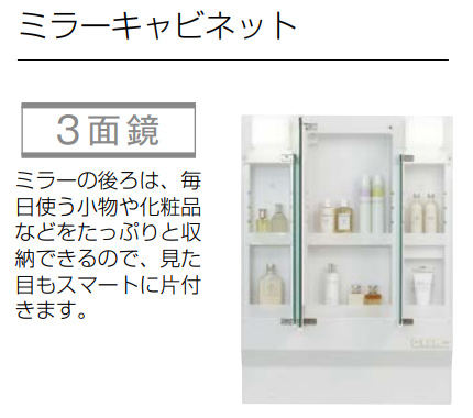 ミラーキャビネット 3面鏡 LEDランプ くもり止めヒーター付