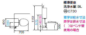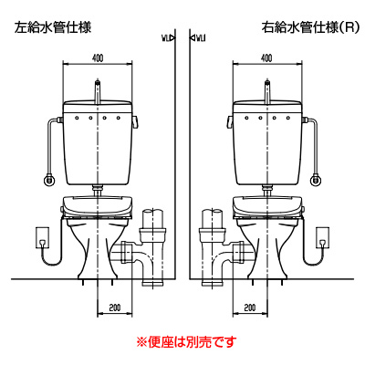 ※右側給水管タンクは品番にRがつきます(給水は壁仕様)