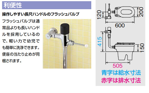幼児用大便器[床:排水芯505mm][フラッシュバルブ][掃除口付][1〜2歳用][暖房便座][ハイパーキラミック][一般地]