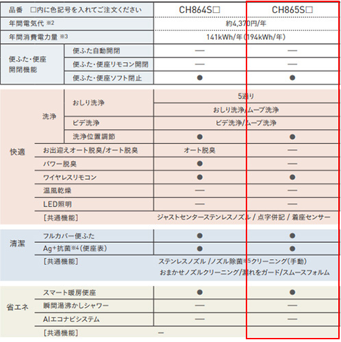 [グレード別機能:CH865Sグレード]