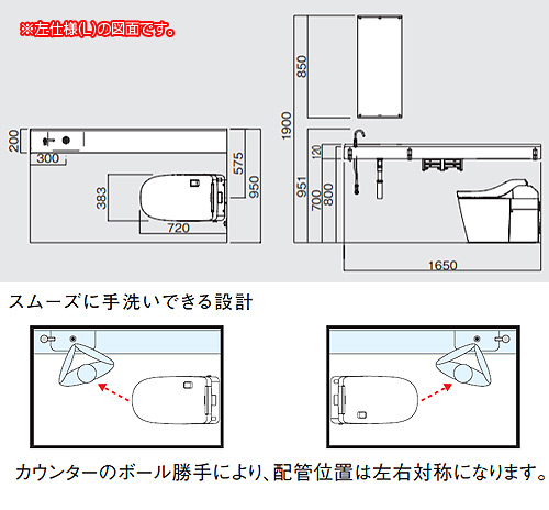 トイレカウンターTS[幅1650mm][ハンドル式単水栓(スワン型)][壁排水][プランNo.TTS18]