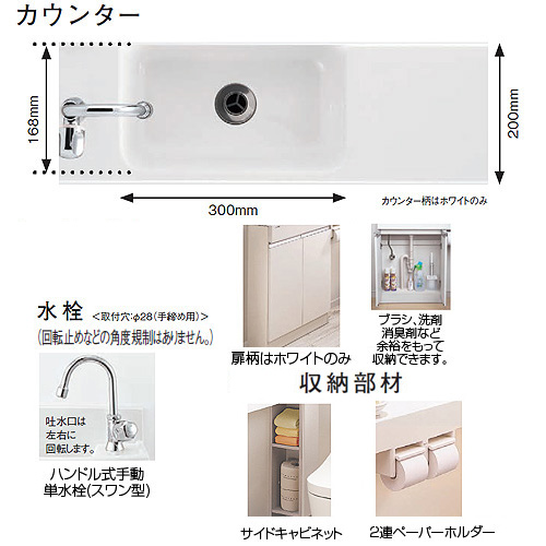 ・単独使用はできません。必ずカウンターの下に取付てください。