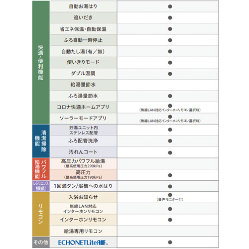 ・自動たし湯(有/無)