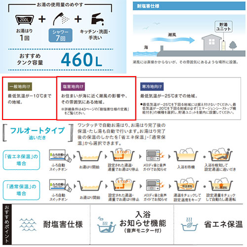 ♪【10年保証付】【工事費込】エコキュート[フルオート][460L][角型][ハイグレード][標準圧][一般地][耐塩害仕様][スマイル10][リモコン脚部カバー]