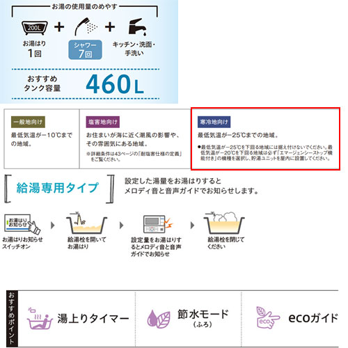 【10年保証付】【工事費込】エコキュート[台所リモコン付属][給湯専用][460L][角型][スタンダード][標準圧][寒冷地][スマイル10][脚部カバー]