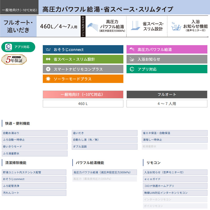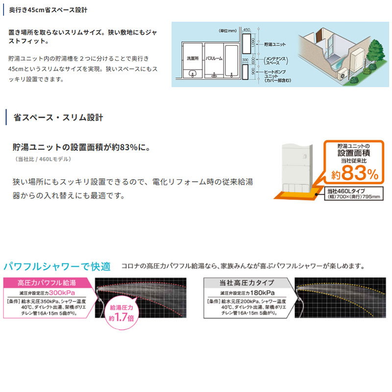 高圧力パワフル給湯・省スペース・スリムタイプです。