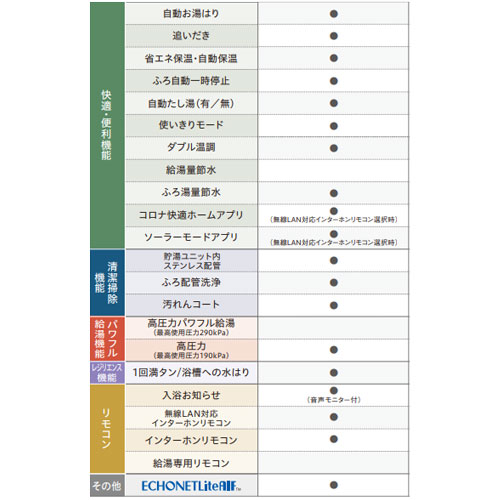 ただし貯湯ユニット内に溜まっているお湯(水)までストップする機能ではありません。屋内設置におすすめです。