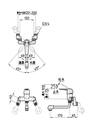 キッチン用蛇口[壁][シングル取替混合水栓][整流][スパウト170mm][一般地]