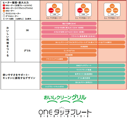 ・火力調整:左右16段階、中央7段階、グリル5段階