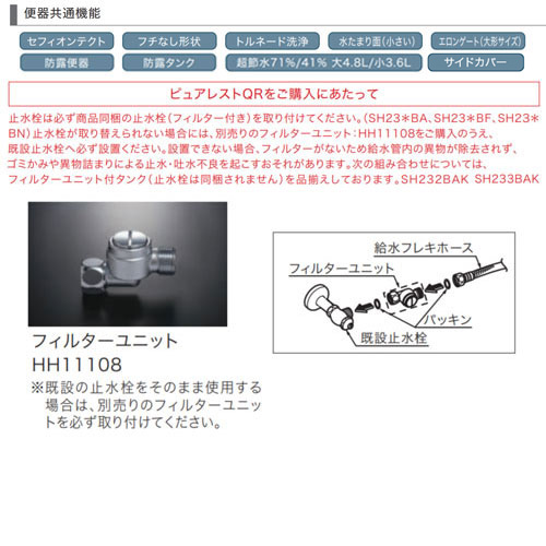フィルター付止水栓同梱