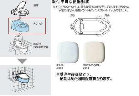 また、C375AV・AVFであっても、便器リム手前の形状が湾曲してる場合はセットできません。