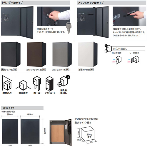 家族の皆が受け取り可能なプッシュボタン錠タイプ。(暗証番号は自由に設定出来ます)
