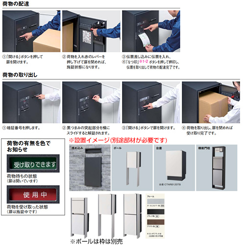 宅配ボックス コンボフラット[ボックスのみ][前入][前出][FF][プッシュボタン錠][押印機構あり][ミドルタイプ]