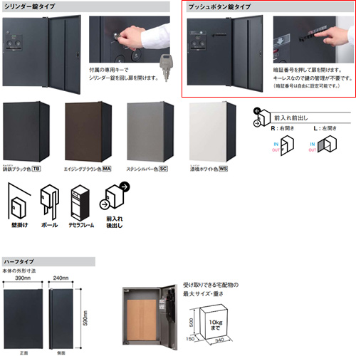 家族の皆が受け取り可能なプッシュボタン錠タイプ。(暗証番号は自由に設定出来ます)