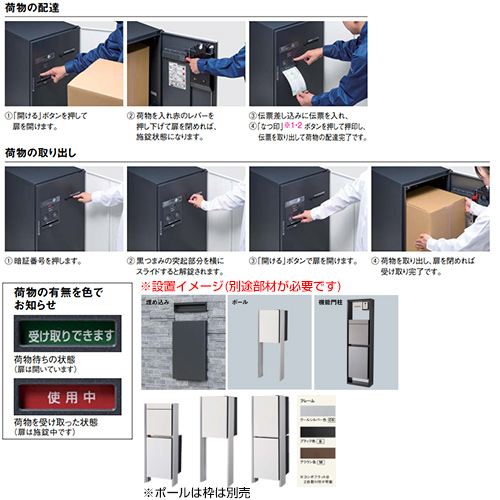 宅配ボックス コンボフラット[ボックスのみ][前入][前出][FF][プッシュボタン錠][押印機構あり][ハーフタイプ]