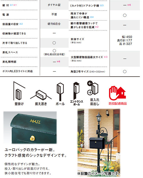 ・壁掛け:門塀や住宅壁に取付け、投入取り出しが前面だけで行えます。